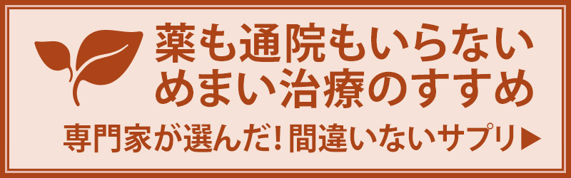 日常摂取する食事から、めまいに悪いものなどを避け、良いものを摂取することによって解消する